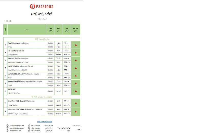 ویژگیهای شاخص کیت استخراج Plant RNA پارس توس: